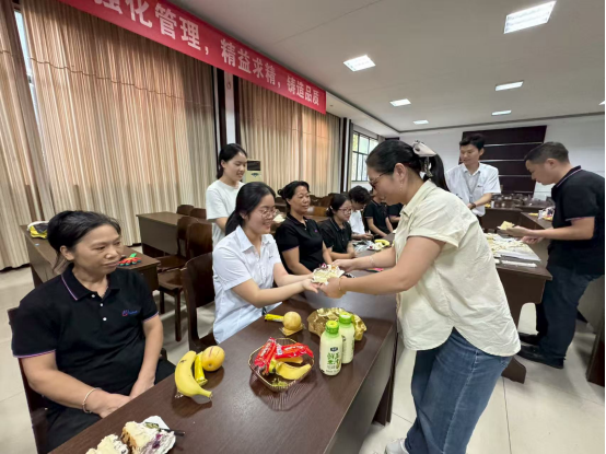 公司常務副總黃總帶領各位領導親臨現(xiàn)場,一走進活動場地,便面帶親切笑容向壽星們揮手致意。黃總拿起話筒,溫和的話語里滿是真誠:“今天看到大家齊聚一堂,特別開心!八月的壽星們在崗位上兢兢業(yè)業(yè),為公司發(fā)展添磚加瓦,這份付出我們都看在眼里。在此代表公司,祝大家生日快樂,愿大家在工作中收獲成長,在生活中滿是幸福!”