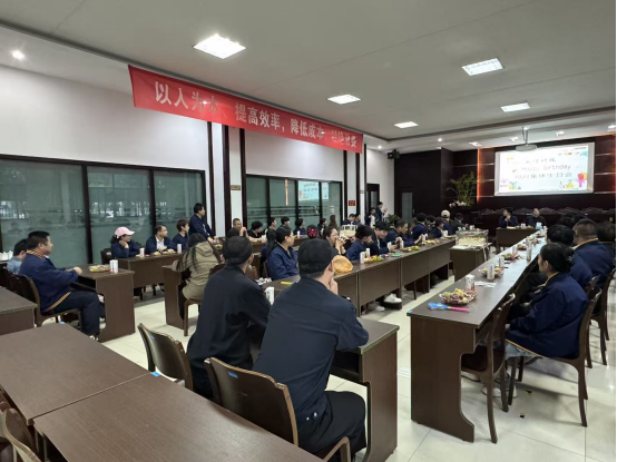 隨著歡快的音樂響起,生日會正式拉開帷幕。常務副總黃總攜手各位領導為大家送上了真摯的生日祝福,溫暖的話語讓現場氛圍愈發濃厚。隨后,大家圍聚在一起,為壽星們共唱生日歌,熟悉的旋律在會場中回蕩,溫馨的氣息感染著每一個人。緊接著,壽星們閉上眼睛,默默許下心中美好的愿望,然后一同吹滅蠟燭,將此刻的美好與期許定格。